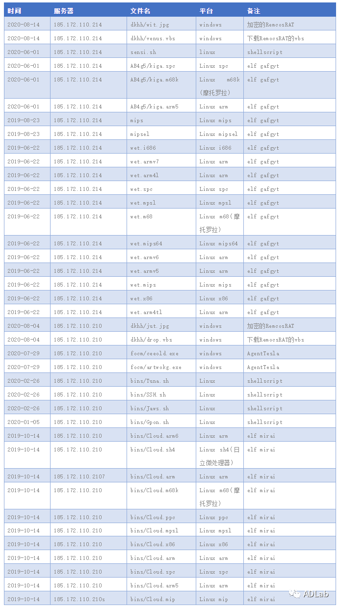 ÖÁ´Ë£¬Ê¹ÓÃÒÔÉÏÒªÁìÎÒÃÇÒѾÎÞ·¨ÕÒ³ö¸ü½øÒ»²½µÄÏßË÷£¬¿ÉÊÇÎÒÃÇ»ñµÃÁ˸ü¶àÑù±¾ºÍºÚ¿ÍµÄÔ˶¯Ê±¼äÐÅÏ¢¡£Òò´Ë£¬ÎÒÃÇת¶ø¶Ô8Ô·ݹ¥»÷Ô˶¯µÄÁíÍâÁ½¸ö´æ´¢·þÎñÆ÷£¨IP:185.172.110.210 ºÍ185.172.110.214£©¾ÙÐÐÆÊÎö£¬²¢ÕÒµ½ÁË¡°º£¶¾Éß¡±¶ÔÕâÁ½Ì¨·þÎñÆ÷µÄʹÓüͼ£¬±í¸ñ2ΪÎÒÃÇÕûÀí³öÀ´µÄ¶ñÒâ´úÂëÉÏ´«¼Í¼¡£
