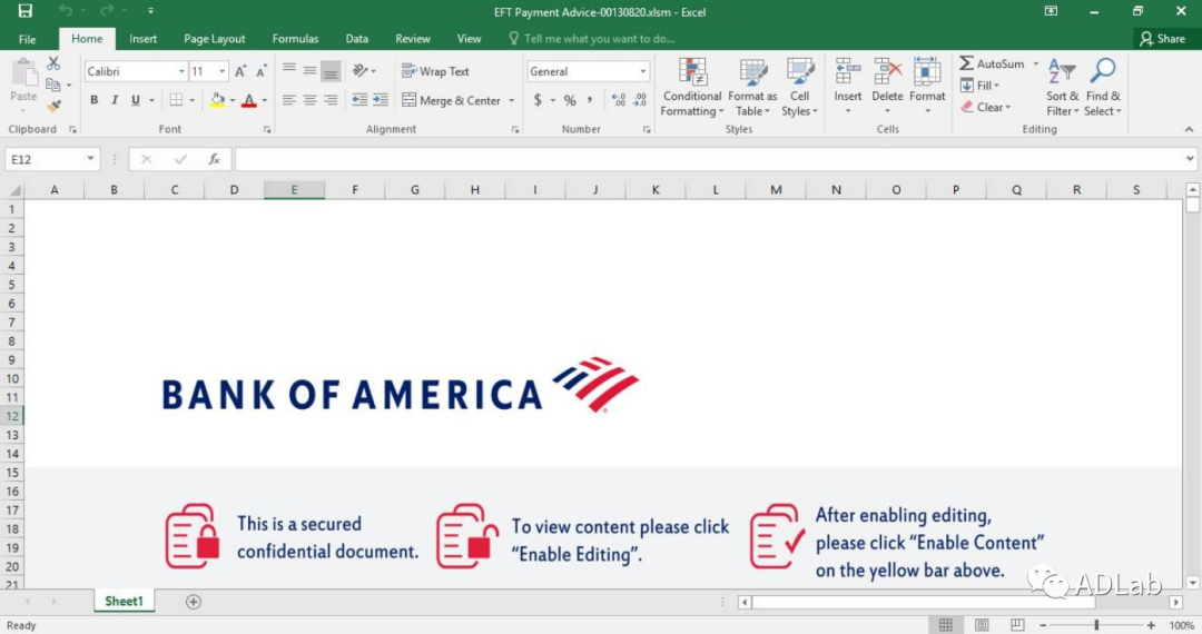 ¸ÃÓÕ¶üÎĵµ±»Î±×°³É¸Ã¹«Ë¾8Ô·ݵĸ¶¿î֪ͨÕ˵¥£¬´ÓÓÕ¶üÎĵµ·¿ªºóµÄÄÚÈÝ£¨Èçͼ18Ëùʾ£©¿ÉÒÔ¿´µ½£¬Õû¸öexcel±í¸ñ½ö°üÀ¨Ò»ÕÅͼƬ£¬Í¼Æ¬ÖеÄÎÄ×Ö´óÒâΪ£ºÒªÏë¿´µ½±»±£»¤µÄÄÚÈÝ£¬ÐèÒªÆôÓúêÑ¡Ïî¡£Ò»µ©Êܺ¦Õß±»ÓÕÆÆôÓÃÁ˺êÑ¡Ï¶ñÒâºê´úÂë±ã»áÁ¬Ã¦Ö´ÐС£