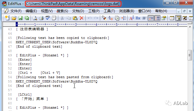 Remcos RATľÂí»áÆô¶¯¼üÅ̼ͼÏß³ÌÀ´ÇÔÈ¡ÊÜѬȾÖ÷»úµÄ¼üÅÌÊäÈëÐÅÏ¢ºÍ¼ôÇаåÊý¾Ý¡£Ä¾Âí½«ÇÔÈ¡µÄÕâЩÐÅÏ¢ÉúÑÄÔÚÍâµØÎļþ¡°%Appdata%\remcos\logs.dat¡±ÖС£ÔÚÒÔǰµÄÓÐЩ°æ±¾ÖÐlogs.datÎļþÊǼÓÃܵ쬲»¹ýÔÚ´Ë´ÎÎÒÃÇÆÊÎöµÄÕâ¸ö°æ±¾ÖÐlog.datÎļþûÓмÓÃÜ£¬Êý¾ÝµÄ¼Í¼ÃûÌúÍ֮ǰµÄ°æ±¾»ù±¾ÀàËÆ£¨Èçͼ34£©£¬Ä¾ÂíºóÐø»á½«ÍøÂçµ½µÄÕâЩ¼Í¼ÈÕÖ¾·¢Ë͵½C&C·þÎñÆ÷¡£