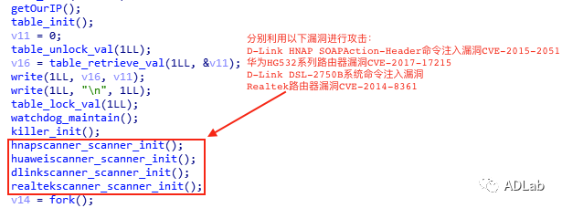 ΪÁËÕÆÎÕ¸ü¶àµÄÐÅÏ¢£¬ÎÒÃǼӴóÁ˶ԸÃ×é֯ʹÓõÄÎïÁªÍø½©Ê¬µÄÍøÂ磬¹ØÁª³ö1384¸ö¸Ã×é֯ʹÓõĹ¥»÷Ñù±¾£¬²¢Í¨¹ýADLabÎïÁªÍø×Ô¶¯»¯ÆÊÎöƽ̨¶ÔÕâЩÑù±¾¾ÙÐÐ×Ô¶¯»¯ÆÊÎö£¬½øÒ»²½¹ØÁª³öÁË100¶à¸öC&C·þÎñÆ÷¡£ÆÊÎöЧ¹ûÅú×¢£¬¸Ã×éÖ¯ÒÔÍù¼¸Äê¾³£Ê¹ÓûªÎªHG532ϵÁзÓÉÆ÷Îó²îCVE-2017-17215¡¢°®¶ûÀ¼¹«Ë¾¡°Eir¡±µÄD1000µ÷ÖÆ½âµ÷Æ÷TR064·þÎñÎó²îCVE-2016-10372¡¢Realtek·ÓÉÆ÷Îó²îCVE-2014-8361¡¢D-Link Devices HNAP SOAPAction-HeaderÏÂÁî×¢ÈëÎó²îCVE-2015-2051¡¢D-Link DSL-2750B ϵͳÏÂÁî×¢ÈëÎó²îµÈÖ÷Á÷µÄÎïÁªÍø×°±¸Îó²î¹¥»÷²¢¿ØÖÆ×°±¸¡£Í¼5ÊÇij¸öÑù±¾µÄ¹¥»÷´úÂëÆ¬¶Ï¡£