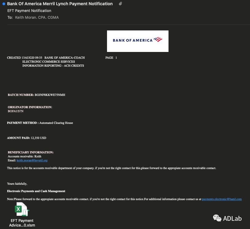 2020Äê8ÔÂÖÐÑ®£¬×ðÁú¿¹ÙÍøÈë¿ÚADLab¼à²âµ½Ò»·âÌâΪ¡°µç×ÓתÕ˸¶¿îÕ˵¥¡±µÄ¶ñÒâÓʼþ£¬¸ÃÓʼþÒÔ¡°ÃÀ¹úÒøÐС±µÄÃûÒåÌᳫ´¹ÂÚÓʼþ¹¥»÷£¬Æä¸½¼þΪһ¸öexcel±í¸ñÎļþ(ͼ1Ϊ±¾´Î¹¥»÷µÄÒ»¸öÓʼþÑù±¾£¬Ä¿µÄΪÃÀ¹ú°¢À°ÍÂíÖݺà´Äά¶ûÊй«¹²ÊÂÒµ¹«Ë¾¡°Huntsville Utilities¡±)£¬Í¨¹ý¶à¼¶´úÂëÌø×ª×îÖÕÏòÄ¿µÄÖ²ÈëRemcos RAT£¬ÒÔÇÔȡĿµÄÖ÷»úµÄÉñÃØÐÅÏ¢¡£ÔÚÆðÔ´ÆÊÎöºó,³ýÁËÁãÐǵÄÑù±¾ÐÅÏ¢Í⣬ÎÒÃÇûÓÐÔÚ¹ûÕæÇ鱨ºÍ˽ÓÐÇ鱨¿âÖÐÕÒµ½ÈκÎÓë¹¥»÷¼°¹¥»÷±³ºóµÄºÚ¿Í×éÖ¯Ïà¹ØµÄÐÅÏ¢¡£Í¨¹ý¶Ô»ù´¡ÉèÊ©µÄ¹ØÁªÆÊÎö£¬·¢Ã÷¸ÃºÚ¿Í×éÖ¯Óë¶à´ÎÎïÁªÍø¹¥»÷ÓÐ×ÅϸÃܵĹØÏµ£¬Òò´ËÎÒÃǾöÒé¶Ô±¾´Î¹¥»÷Ô˶¯¼°Æä±³ºóµÄ¹¥»÷ÍÅ»ï¾ÙÐÐÒ»´ÎÃþµ×¡£ÎÒÃÇºÜ¿ì¹ØÁªµ½8Ô³õÁíÍ⼸ÆðÏàͬÊÖ·¨µÄ¹¥»÷£¬Õ⼸Æð¹¥»÷αװ³ÉÁË¡°ÃÀ¹ú´óÍ¨ÒøÐС±ºÍ¡°ÃÀ¹ú¸»¹úÒøÐС±Ïò½ðÈÚ»ú¹¹¡°ENGS¡±Í¶·Å¹¥»÷´úÂ루ͼ2£©¡£